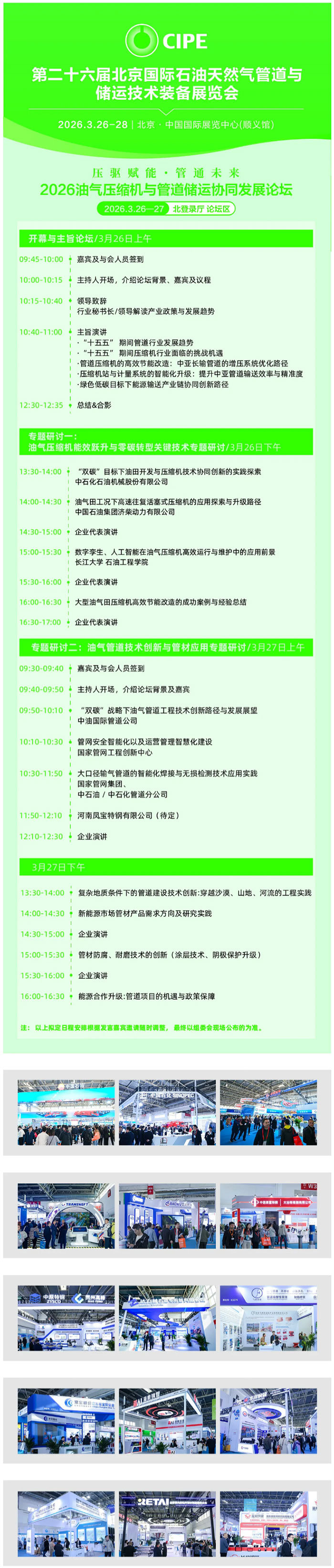 一年一度的世界油氣管道大會(huì)——第二十六屆北京國(guó)際石油天然氣管道與儲(chǔ)運(yùn)技術(shù)裝備展覽會(huì)(簡(jiǎn)稱CIPE北京管道展)將于2026年3月26-28日在中國(guó)國(guó)際展覽中心(順義館)舉行,同期舉辦第四屆北京國(guó)際管道技術(shù)交流會(huì)暨管材應(yīng)用研討會(huì),展出面積12萬(wàn)平米,超2000家企業(yè)參展,全面展示油氣管道領(lǐng)域全產(chǎn)業(yè)鏈最新技術(shù)設(shè)備。